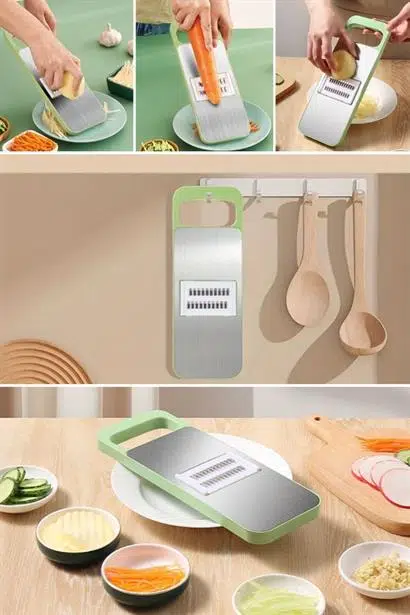 · 7 Farklı Bıçaklı Doğrayıcı Keskin Pratik Mutfak Rendesi, mutfakta işlerinizi hızlandırmak ve daha verimli hale getirmek için tasarlanmış çok yönlü bir mutfak aletidir.