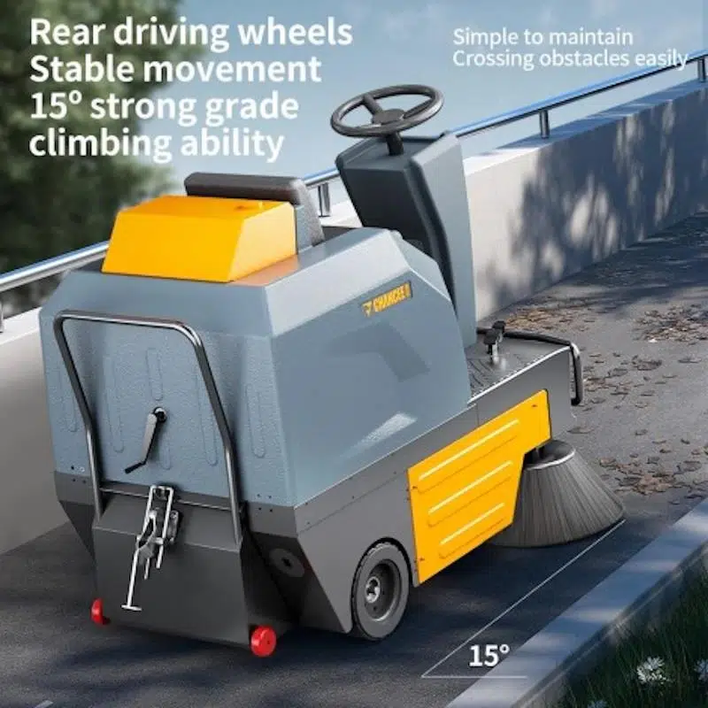 · Binicili akülü zemin süpürücü, araç trafiğine kapalı olan iç ve dış alanlarda zeminlerin süpürülmesi amacıyla kullanılmaktadır.