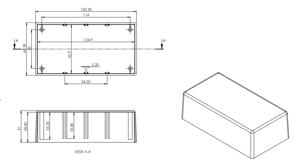 ElektronikProje Kutusu (Ölçüleri: 68x130x44mm) – Siyah