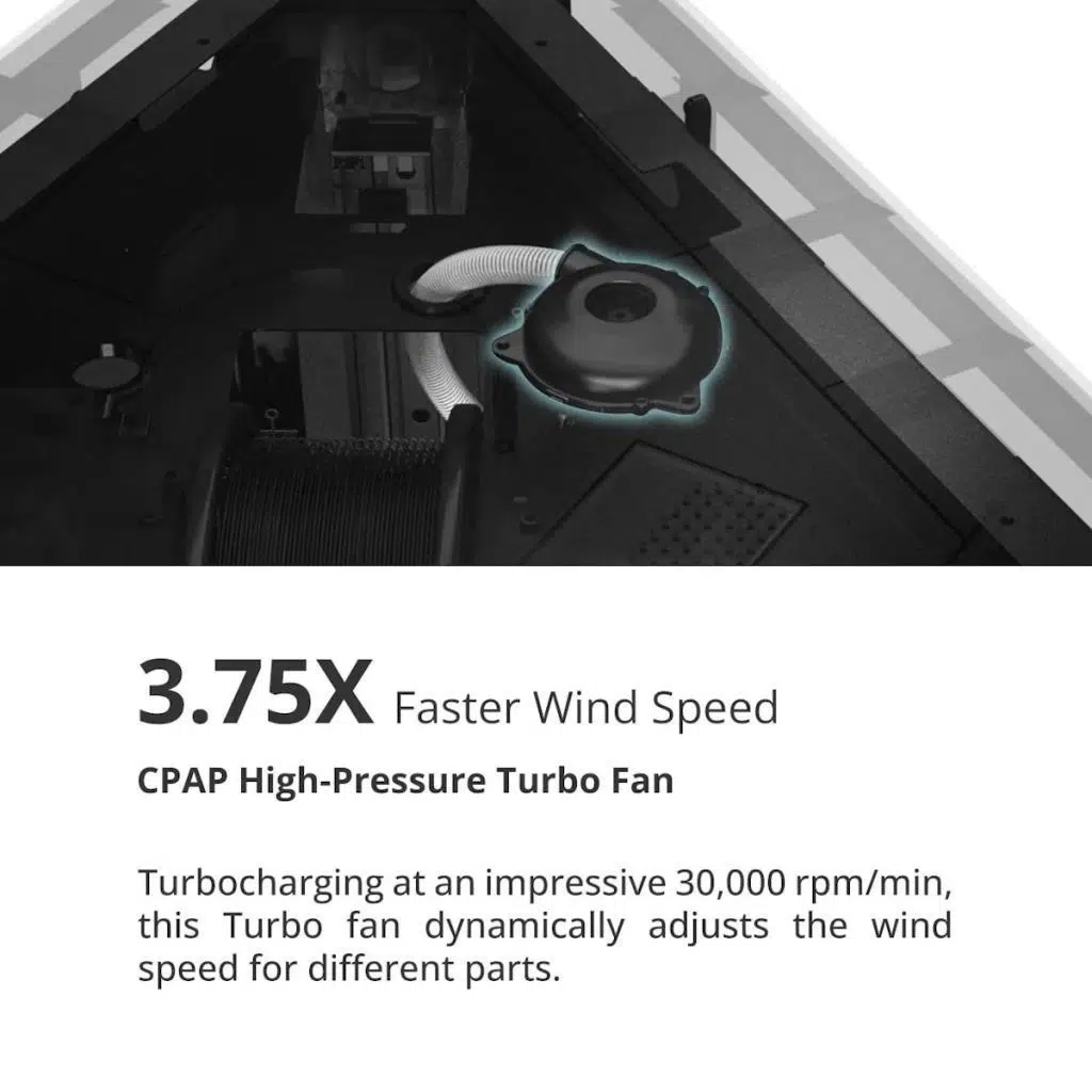 ·Etkileyici 30.000 rpm/dakika hızında çalışan bu Turbo fan, farklı parçalar için rüzgarı dinamik olarak ayarlar.