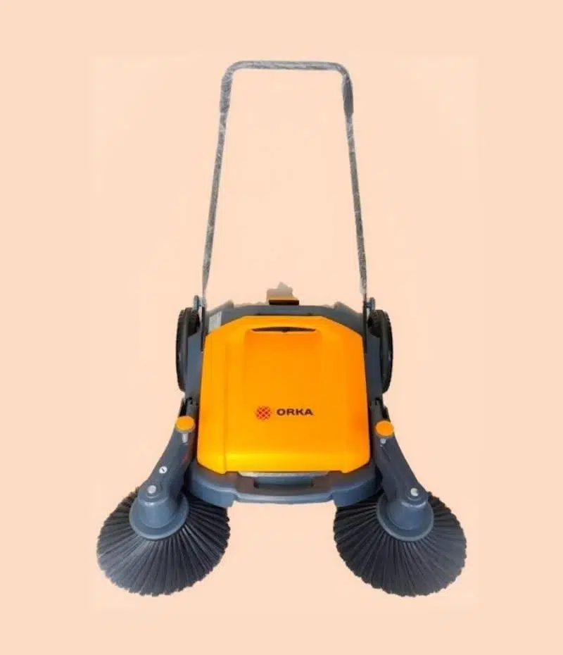 · ORKA U90, 55 litrelik çöp haznesi ve üç fırçalı yapısıyla iç ve dış mekanlarda kullanılan manuel yol süpürücü makinedir.