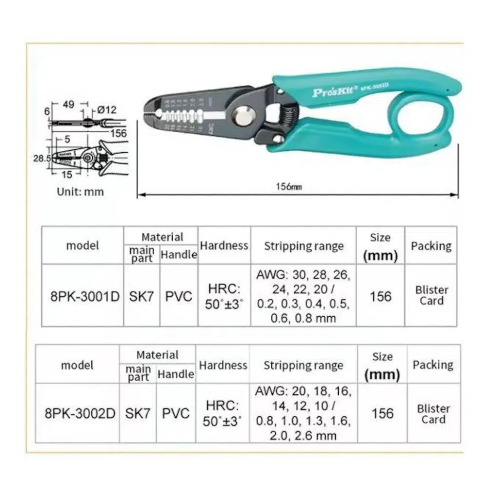 Proskit 8PK-3001D Hassas Kablo Soyucu – AWG 30-20 SK7 Çelik Profesyonel Sıyırıcı