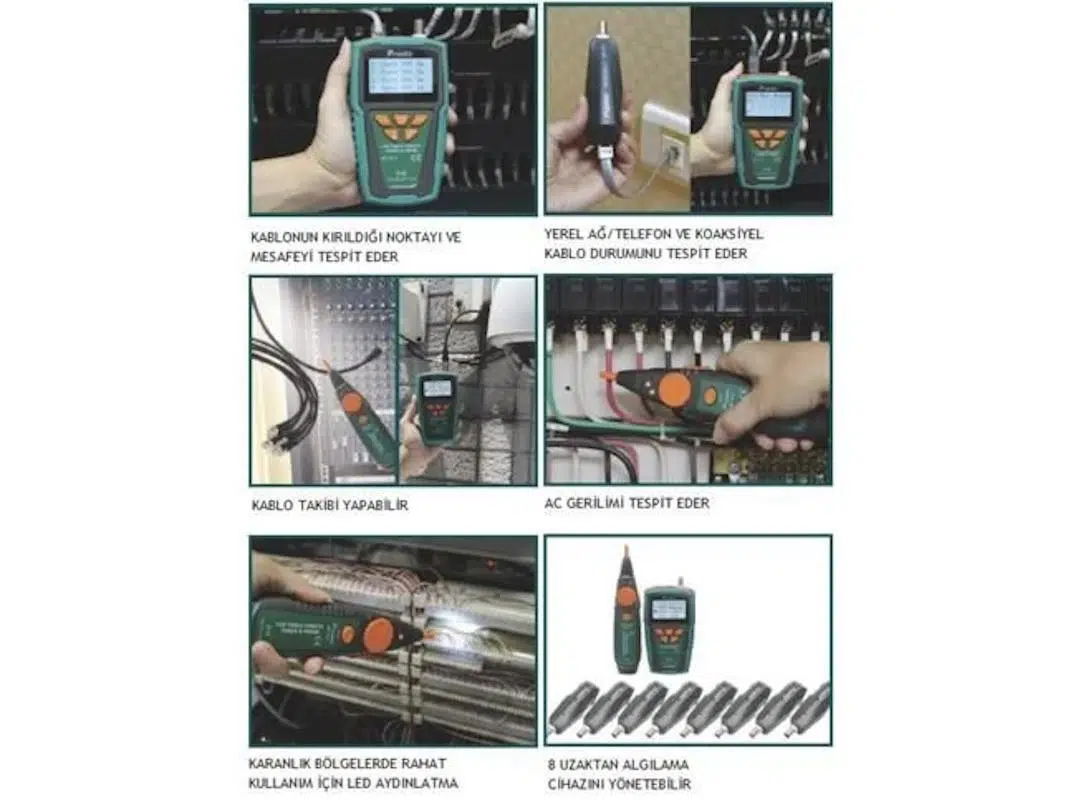 Pro'sKit MT-7071 LCD Network Kablo Uzunluk Test Cihazı, Toner ve Prob Kit Seti