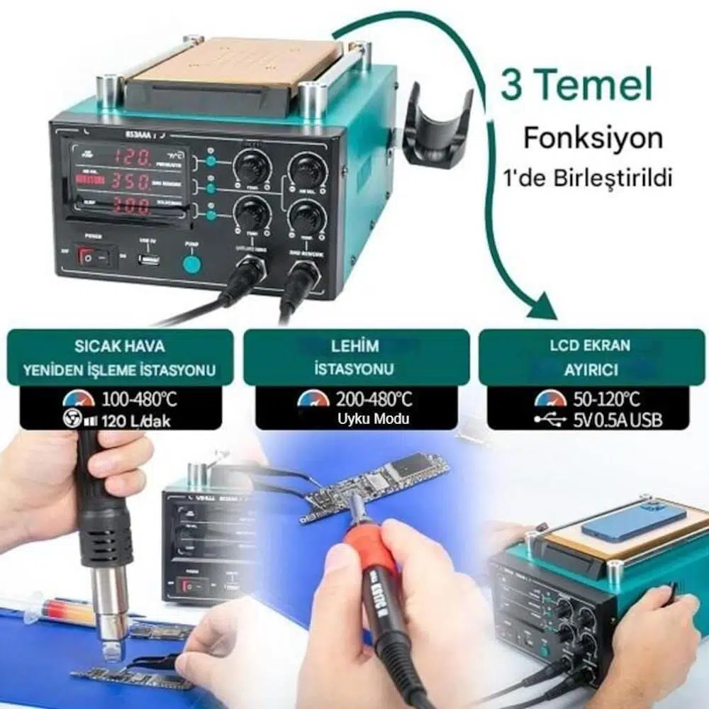 Prolink P-53 AAAII 3in1 Dijital Sıcak Hava Üflemeli Havya ve LCD Ekran Ayırıcı İstasyon (853AAA-II)