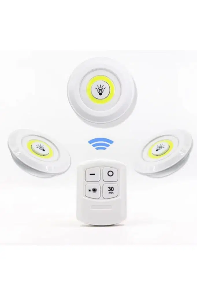 SANEC 3'lü Kumandalı Yapışkanlı Kablosuz Pilli LED Spot Lamba ve Işıldak