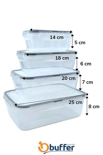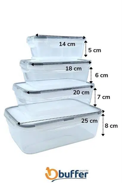 · Her sebze meyve ve erzağa uygun 4 boy saklama kabı seti.