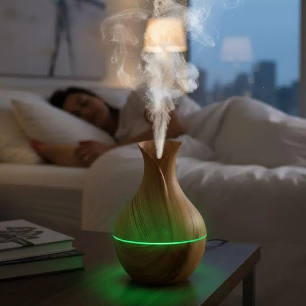 SANEC Damla Model Akasya Renk Hava Nemlendirici – Ultrasonik Soğuk Buhar Makinesi ve LED Işıklı Masaüstü Oda Nemlendirici