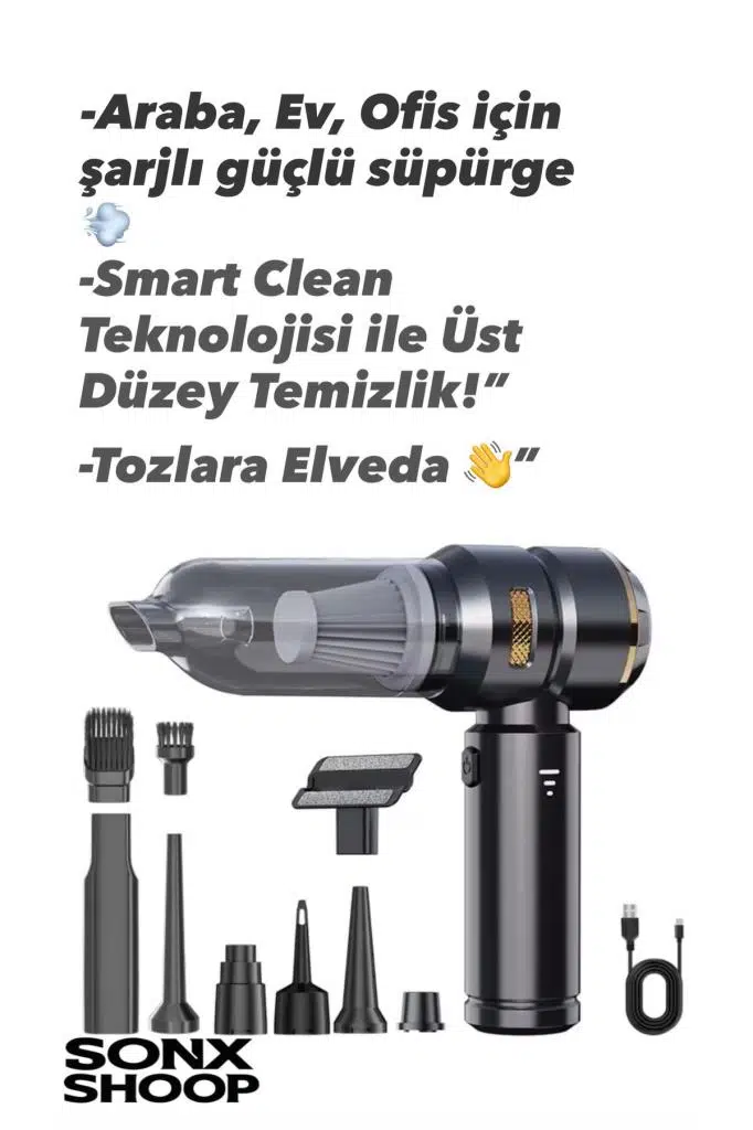 SANEC Kablosuz Şarjlı El Süpürgesi 2’si 1 Arada – Güçlü Vakum ve Üfleme Özellikli Mini Temizlik