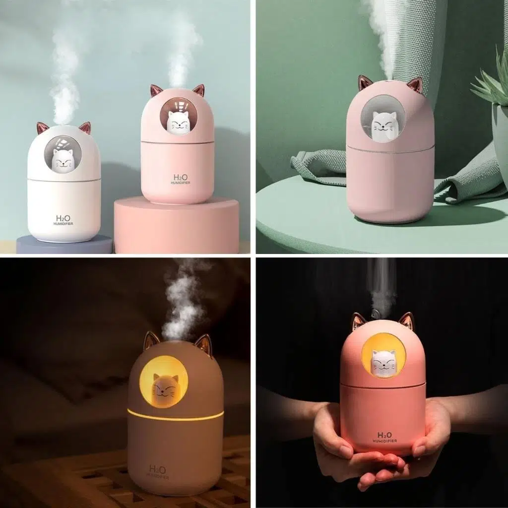 SANEC Kedicik Figürlü Hava Nemlendirici – Ultrasonik Soğuk Buhar Makinesi ve LED Işıklı Masaüstü Oda Nemlendirici