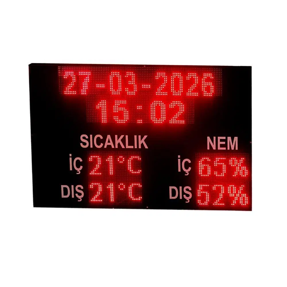 SANEC LED Tarih Saat Sıcaklık Nem Göstergesi 130x83cm – WiFi Kontrollü Endüstriyel Dijital Tabela