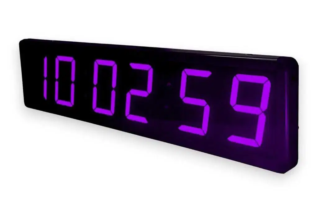 SANEC WiFi Senkronize Saniyeli Dijital LED Duvar ve Masa Saati – Otomatik İnternet Saat Ayarlı, Mor LED, 15x50 cm