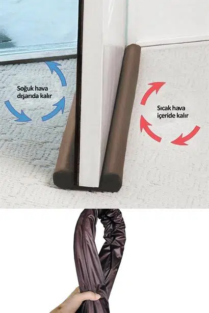 ·Kapınızın altından girip çıkan soğuk veya sıcak hava akışını engellemek kapı altı rüzgarlığı ile çok kolay.