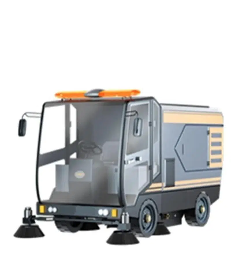 · ORKA U220C, endüstriyel temizlik ihtiyaçları için tasarlanmış, tam kapalı kabinli, yüksek verimliliğe sahip bir elektrikli yol süpürme aracıdır.